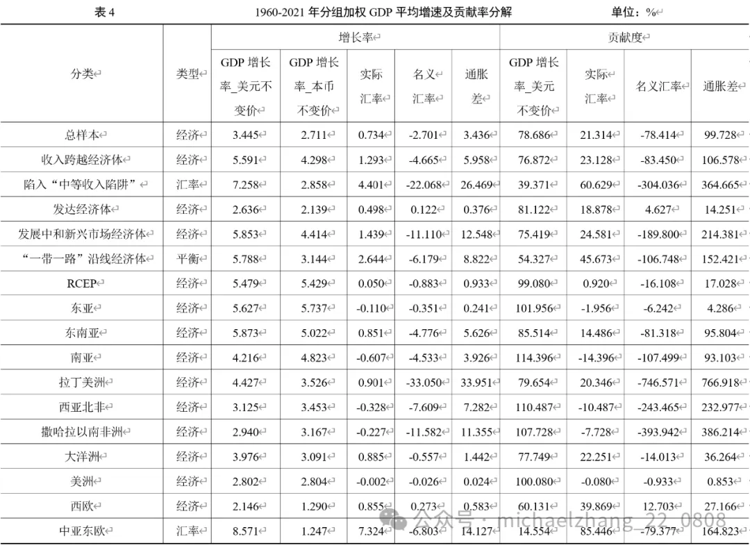 第四,本币计价实际GDP增速和实际汇率升值之间存在权衡取舍,大部分实际汇率主导型经济体难以跨越“中等收入陷阱”。
