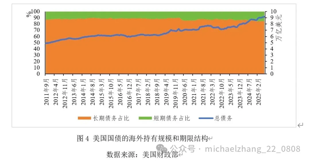 尽管从总量上看,海外投资者对美国国债的持有规模持续攀升,但其内部的持有结构正发生深刻调整,这主要体现在期限偏好和持有人类型两方面,一定程度上反映出美国国债风险的上升。