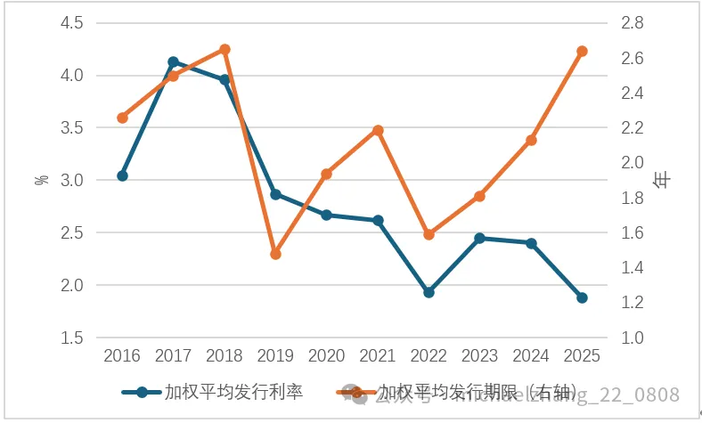近年来点心债市场发展之所以异军突起,最重要的原因在于点心债的发展成本相较于同级别美元债券具有明显优势。之所以点心债从2022年起进入快速发展阶段,一个根本原因就在于2022年中美长期利差发生了反转。在2022年中期之前,中国长期利率显著高于美国长期利率,之后两者的利差发生了反转。尤其是从2023年下半年至今,10年期中国国债收益率明显低于美国同期利率,使得发行人更愿意通过人民币来举债。如图4所示,2022年至2025年,点心债的加权平均发债利率均低于2.5%,且2022年与2025年均低于2.0%,这一发债成本无疑显著低于相同信用级别公司发行美元债的成本。事实上,2022年至今,除点心债之外,熊猫债、中国香港人民币贷款市场等均获得长足发展,原因均与人民币融资成本显著低于美元有关。